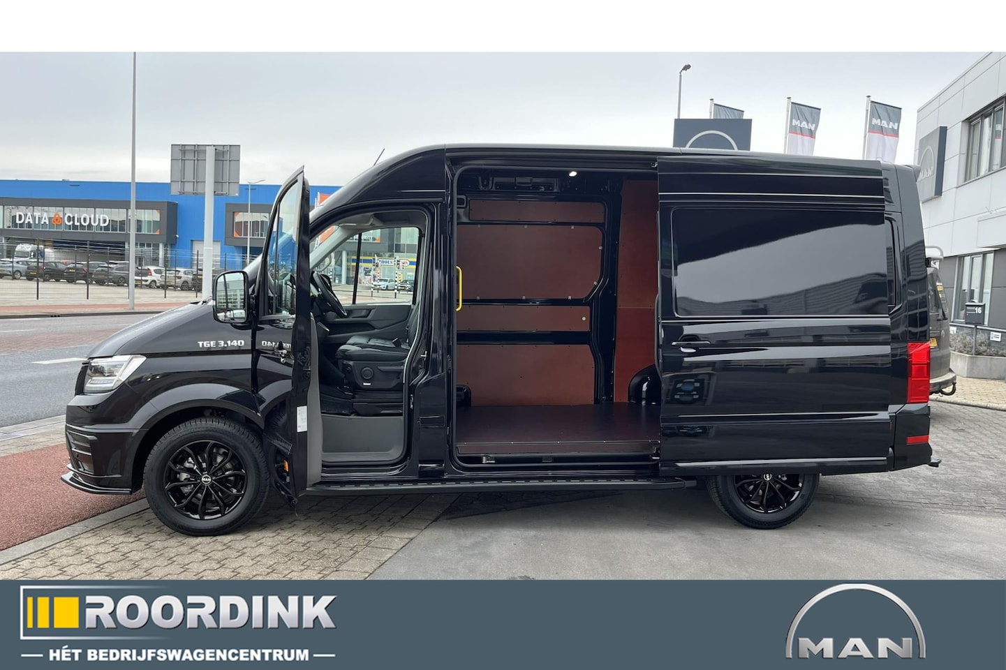 MAN TGE - 3.140 L3H3 Black Lion, lederen bekleding, Zijflanken bumper en spiegels in kleur, sidestep