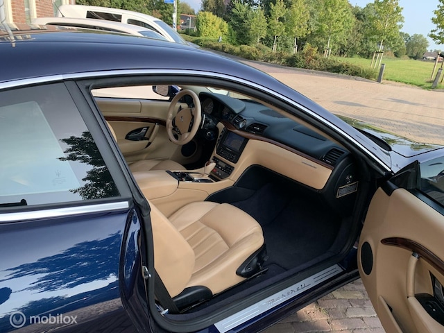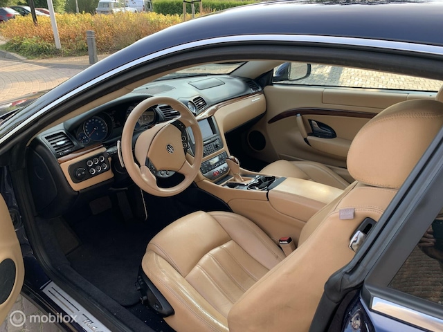 Hij is klaar voor nog jaren rijplezier, deze Maserati GranTurismo uit 2008. Er staat 123856 kilometer op de teller. Hij heeft een benzinemotor en een automatische transmissie. Als we het over kwaliteit en stijl hebben, wat dacht u dan van het lederen interieur? Zit u goed? De stoelen zijn eenvoudig instelbaar dankzij de elektrische bediening met geheugen. Dankzij de xenonverlichting profiteert u in het donker van een krachtige en heldere lichtbundel. Natuurlijk behoren 19 inch lichtmetalen velgen, instelbare schokdempers, getint glas, elektrisch bedienbare en verwarmde buitenspiegels, elektrisch bedienbare ramen voor en pearl metallic lak ook tot de uitrusting van deze complete auto.