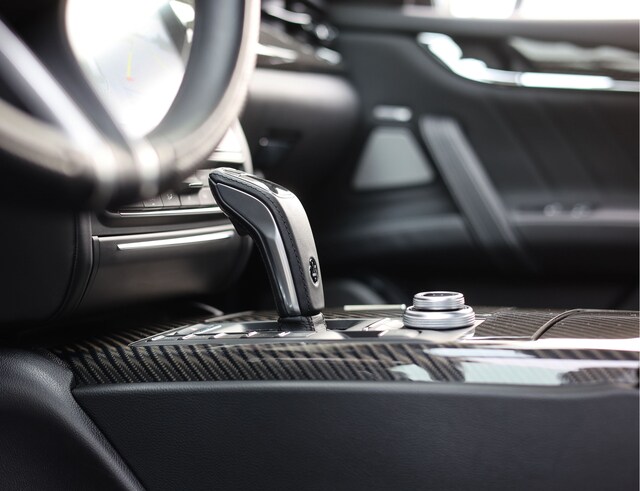 De Nero Assoluto metallic lak benadrukt de lange, vloeiende lijnen van de carrosserie. Op de 21 inch Titano velgen oogt de Quattroporte gespierd, terwijl de rode remklauwen subtiel laten zien dat er meer achter het uiterlijk schuilgaat dan alleen klasse. De proporties zijn perfect in balans: lang, laag en met precies de juiste hoeveelheid Italiaanse flair.