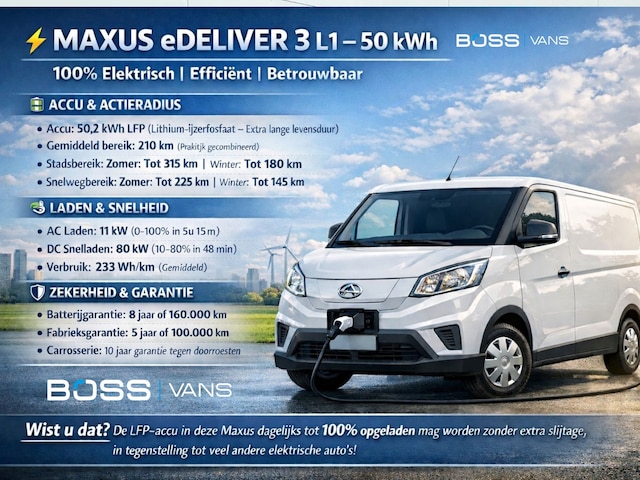 Maxus eDELIVER 3 - 227 km WLTP Automaat SWB L1H1 Airco Cruise Control Carplay Camera Parkeersensoren