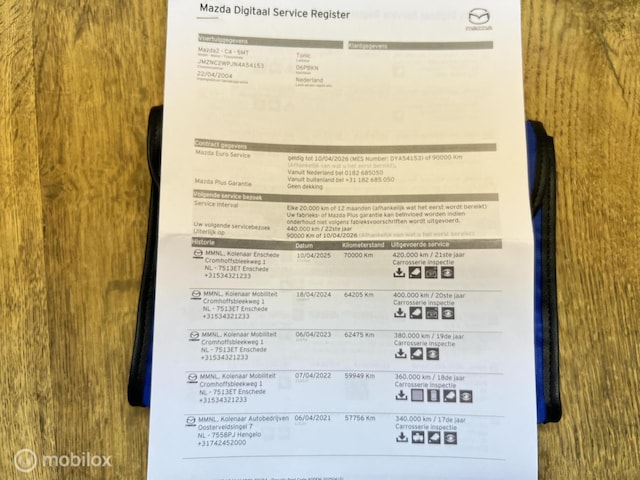 - Onderhoudshistorie aanwezig: Ja