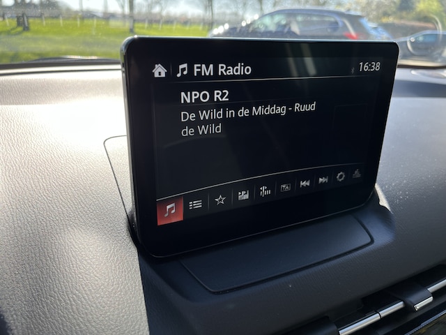 U kunt uw handen aan het stuur houden en uw ogen op de weg. Want het audiosysteem, met DAB-ontvangst, en het navigatiesysteem bedient u vanaf het stuurwiel. Ook over uw schouder ziet u onderweg niet alles wat er aan de achterzijde gebeurt. Daarom heeft deze Mazda 2 een achteropkomend verkeer waarschuwing. Tot de standaard uitrusting van deze auto hoort ook automatische airconditioning. De parkeersensoren waarschuwen wanneer u te krap inparkeert of dat ene paaltje niet hebt gezien. Achter het stuur van deze Mazda bent u niet alleen. De auto kijkt als het ware met u mee tijdens de rit. De regensensor schakelt de ruitenwissers in als het nodig is en de automatisch inschakelbare verlichting doet de lichten voor u aan. Met cruise control, keyless start, automatisch dimmende binnenspiegel, lederen stuur, isofix-aansluiting en centrale deurvergrendeling met afstandsbediening is deze auto helemaal compleet.