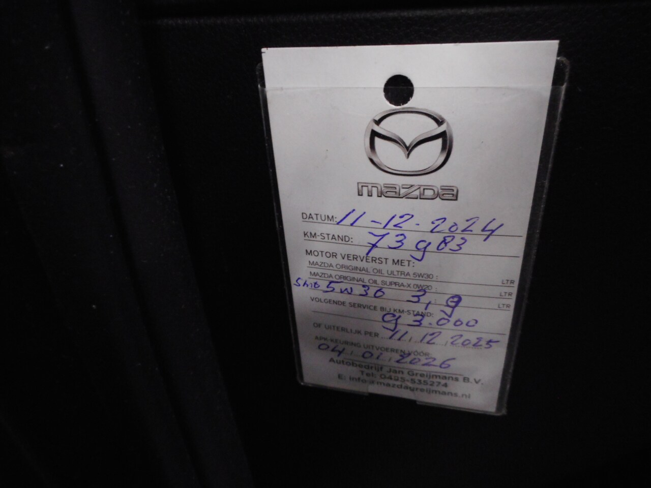 | APK | Bij aflevering |