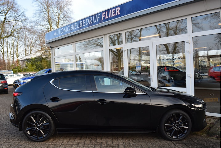 Noem een optie en het zit erop. Doordat deze Jet Black zwarte Mazda 3 beschikt over zwarte accenten en stoere 18 inch lichtmetalenvelgen is deze auto met recht een lust voor het oog. Ook uw bloed gaat sneller pompen bij het aanspreken van de 180 paardenkrachten welke dankzij het SkyActiv X pakket erg goed tot zijn recht komen. Dankzij deze verfijnde techniek is dit een ware puristen auto waar men sportief danwel elegant mee kan rijden en waarmee u dankzij het extra optiepakket 'i-Activesense Pack' veilig en uitgerust op plaats bestemming komt.