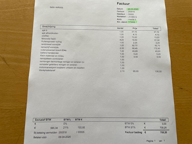 | APK | Bij aflevering |