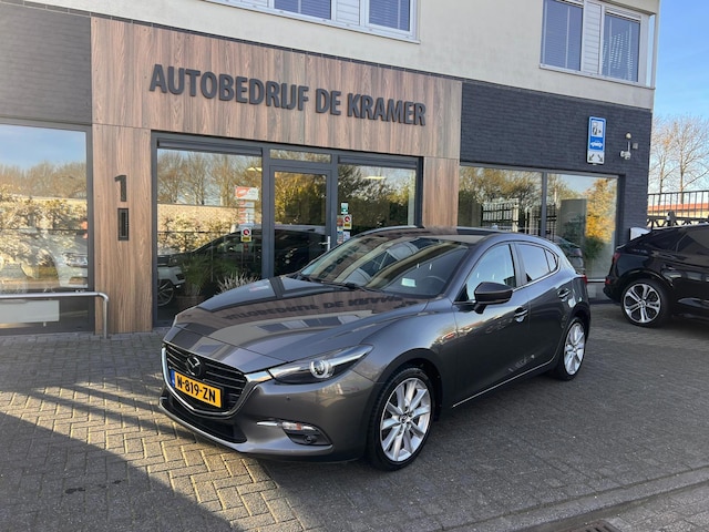 Zoals u mag verwachten van deze Mazda 3 is hij uitgerust met een reeks aan actieve veiligheidssystemen. Dat de auto steeds meer taken van de bestuurder overneemt, merkt u bijvoorbeeld aan het systeem voor verkeersbord-detectie in deze Mazda. Accident avoidance system is een actief hulpmiddel om aanrijdingen te voorkomen. Ook helpen het head-up display, dodehoekdetectie, hill hold functie, brake assist en bandenspanningcontrolesysteem, uw rit tot een veilige rit te maken.