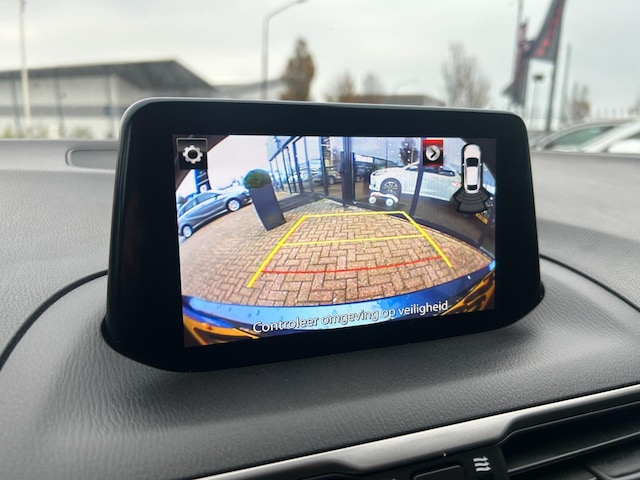 Inparkeren? Met de achteruitrijcamera heeft u er geen omkijken meer naar! Als u regelmatig met een aanhanger of een fietsendrager op pad bent, is de afneembare trekhaak een praktische extra. De bediening van het audiosysteem en het navigatiesysteem gebeurt met knoppen op het stuur en als u wilt zelfs met uw stem. De audio is overigens voorzien van DAB-radio voor een altijd heldere ontvangst. Dankzij electronic climate control is het interieur behaaglijk warm of verfrissend koel. In deze Mazda kunt u zich concentreren op het verkeer, terwijl de auto de omgeving voor u in de gaten houdt. Een automatisch inschakelbare verlichting zorgt dat de verlichting aangaat als het donkerder wordt - in tunnels bijvoorbeeld - en de regensensor schakelt de ruitenwissers in als het nodig is. U hoeft er niets aan te doen. En deze auto heeft ook cruise control, automatisch dimmende binnenspiegel, centrale deurvergrendeling met afstandsbediening, boordcomputer en lederen versnellingspook als standaard uitrusting.