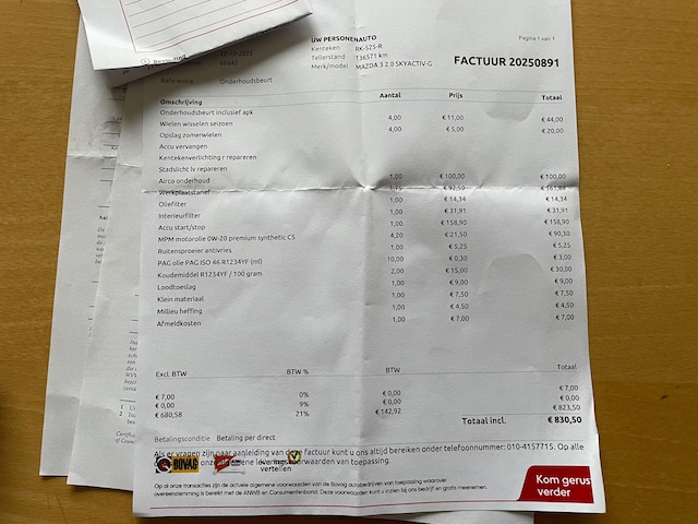 | APK | Bij aflevering |