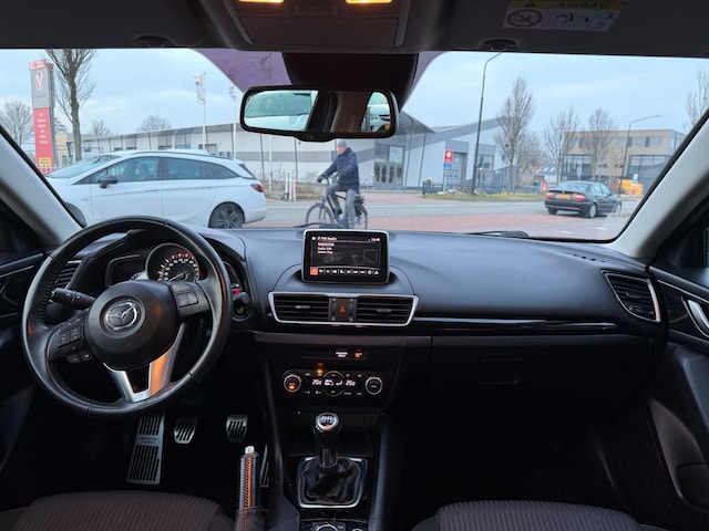 Comfortabel en veilig achteruitrijden gaat gemakkelijker dan ooit met behulp van de achteruitrijcamera. Wegwijs in elke wijk, stad of reisbestemming? Daarvoor zorgt het navigatiesysteem! Tot de standaard uitrusting van deze auto hoort ook automatische airconditioning. Muziek aan, muziek uit? Het kan met een simpele vingerbeweging dankzij de audiobediening op het stuur! De voordelen van de aanwezige cruise control hoeven we niet uit te leggen. Een mooie, constante snelheid - niet te snel, niet te langzaam. Precies goed. De uitrusting van deze Mazda is met keyless entry, automatisch dimmende binnenspiegel, lederen stuur en boordcomputer behoorlijk compleet.