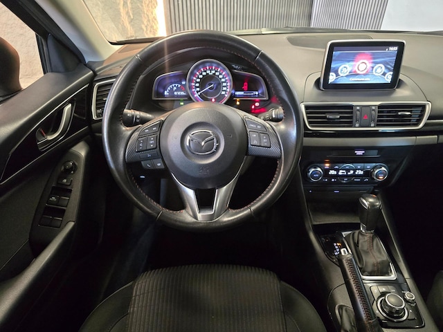 Alle technologie in de Mazda 3 is er op gericht om uw rit veilig en gemakkelijk te laten verlopen. De aandrijving van deze Mazda wordt verzorgd door een viercilinder motor en een automatische transmissie. U wordt in deze auto ook getrakteerd op 16 inch lichtmetalen velgen en verstelbare lendensteunen.