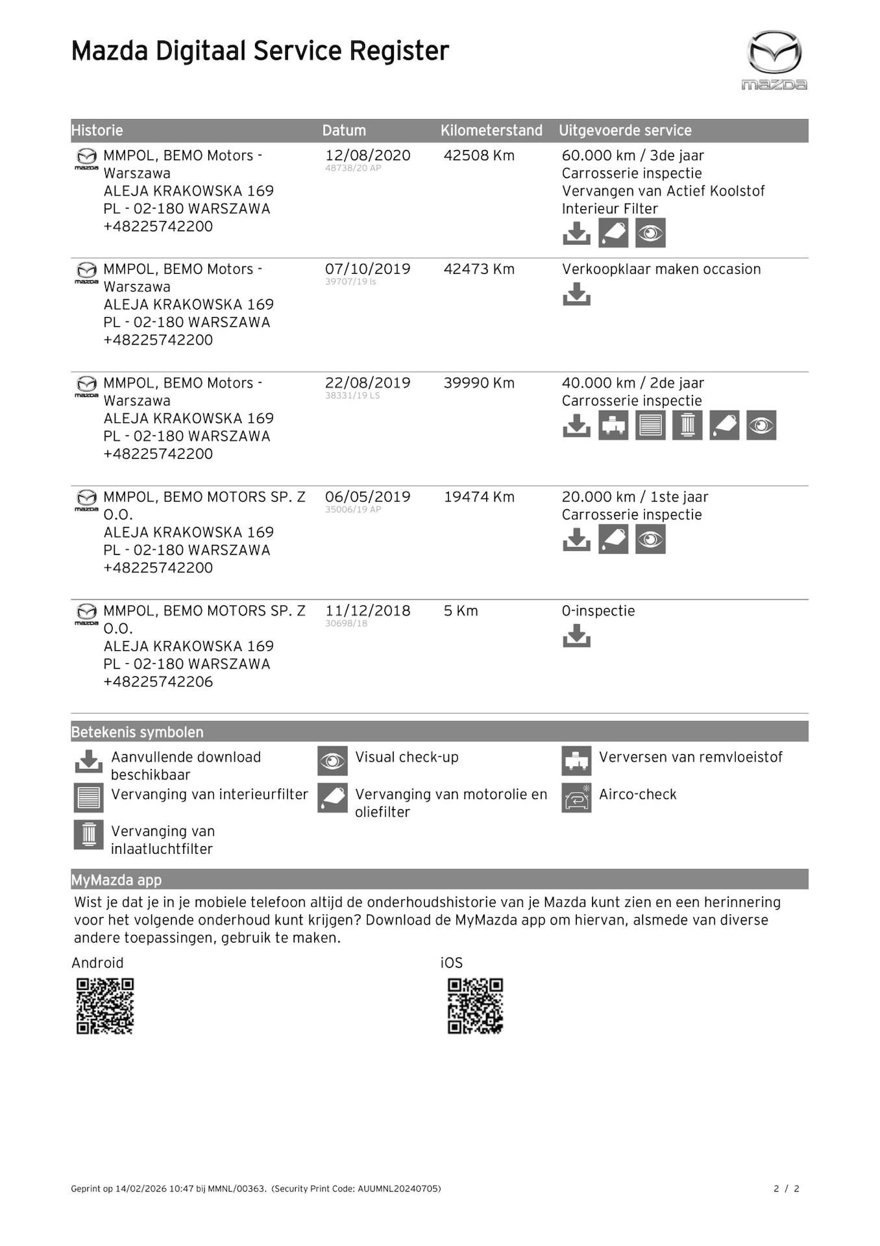 | APK | Bij aflevering |