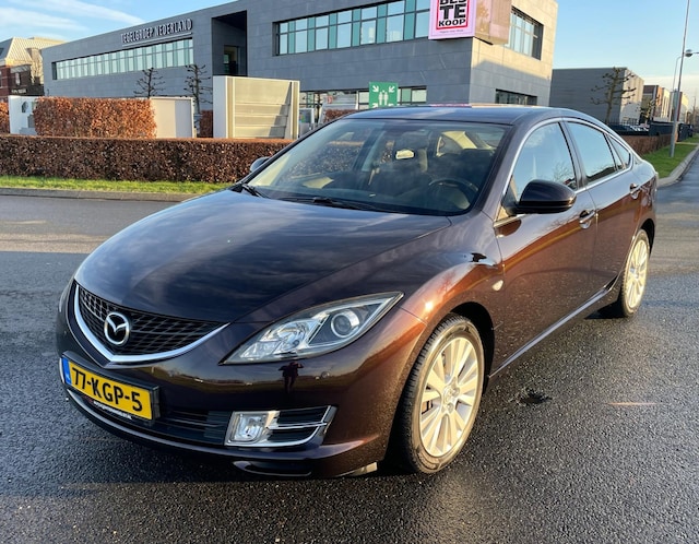 Mazda 6 2.0 S-VT TS, origineel Nederlands geleverd en uitgevoerd in een stijlvolle bruine metallic lak. Deze elegante en comfortabel rijdende sedan combineert tijdloos design met betrouwbare techniek en een prettige uitrusting.
