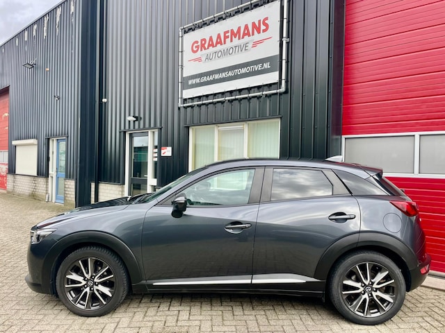 Te koop, sportieve en zeer complete Mazda CX-3 2.0 SkyActive G 120pk GT-M in de prachtige kleur grijs metallic, bouwjaar juni 2016 met 82.000km , 2.0 liter motor met 120PK met o.a. de volgende opties: Leder, Navigatie, Achteruitrijcamera, Head-up display, Adaptive cruise control (houdt automatisch afstand), Autonomous Emergency Braking (auto-noodrem), Dodehoekdetectie (blind spot), Rijstrooksensor / Lane assist, Hill hold functie, Grootlichtassistent, ABS, ESP, Traction Control en airbags (voor/zij/hoofd), LED dagrijverlichting, LED mistlampen, LED achterlichten, Elektrisch inklapbare en verwarmbare buitenspiegels, Premium audio-installatie Bose-audio, Bluetooth & spraakbediening, DAB-radio, Multi stuur van leder, keyless entry, climate control, Airconditioning automatisch, originele Mazda 18 inch velgen zwart, Stoelverwarming. regen en licht sensor, privacy glas achter etc. etc.