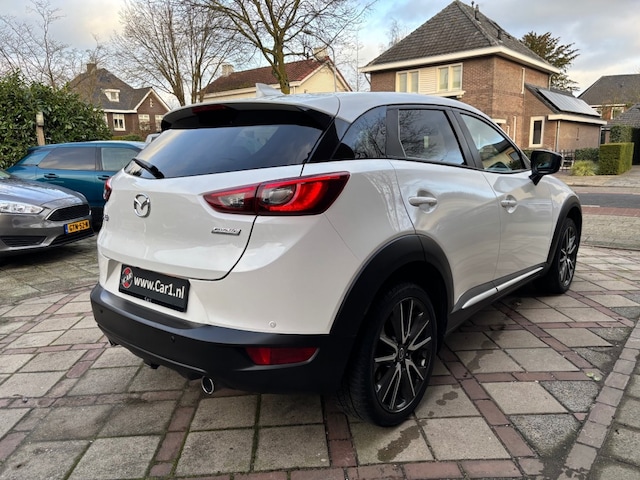 Mazda CX-3, GT-M uitvoering, 4-2018, 142.000km, 120pk, automaat, LED dagrijverlichting, xenon verlichting, privacy glas, parkeersensoren achter, keyless entry / keyless go, afneembare trekhaak, mistlampen voor, achteruitrij camera, 18 inch lichtmetalen velgen, lederen stuurwiel met radiobediening, lederen bekleding, stoelen voor in hoogte verstelbaar, ISOFIX, elektrische ramen voor en achter, elektrische spiegels inklapbaar, Bose geluidsinstallatie, navigatie, cruise control adaptief, bluetooth, USB / AUX aansluiting, head up display, licht en regensensor, airco, stoelverwarming voor, stuurverwarming, boordcomputer.
