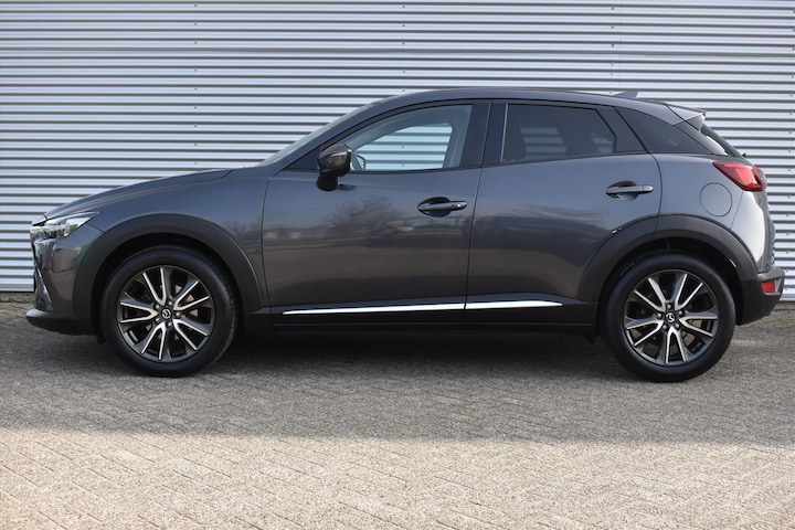 Deze CX-3 is rijkelijk uitgerust, denk hierbij aan: stoel verwarming, Achteruitrij camera, DAB, Navigatie, Parkeersensoren, BlueTooth, LED verlichting, Cruise control en noem maar op.