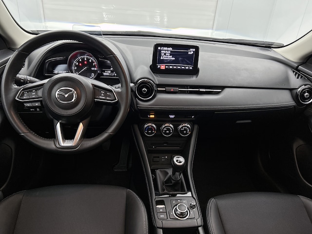 Met een gerust hart achteruitrijden? Dat kan, dankzij de achteruitrijcamera. Het full map navigatiesysteem zorgt ervoor dat je altijd de juiste en snelste route vindt. Omdat je nu eenmaal niet overal ogen hebt, is deze Mazda CX-3 voorzien van een achteropkomend verkeer waarschuwing die registreert wanneer de afstand tot je achterligger te krap is. Het spreekt voor zich dat een auto als deze ook van electronic climate control is voorzien. Schakel simpel en veilig naar je favoriete artiest met de audiobediening op het stuur. De uitrusting van deze auto is met DAB ontvangst, regensensor, cruise control, keyless entry, automatisch dimmende binnenspiegel en centrale deurvergrendeling met afstandsbediening behoorlijk compleet.