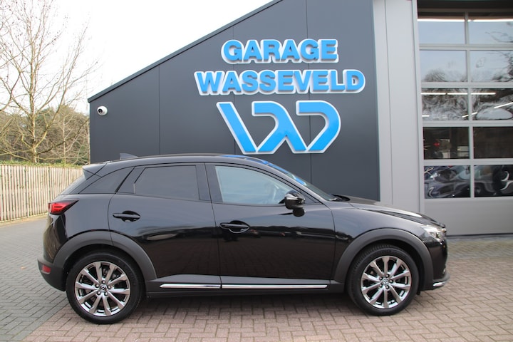 Mazda CX-3 2.0 SKYACTIV-G 121 Signature. Deze originele Nederlandse geleverde CX-3 komt van zijn eerste eigenaar en is rijk uitgerust met comfortabele opties en accessoires zoals stoelverwarming bestuurder+passagier voor, stuurwiel verwarming, ALL SEASON banden, lederen bekleding, BOSE geluidsinstallatie, elektrische verstelbare bestuurdersstoel met memory, Apple Carplay, Android Auto, bluetooth, DAB, adaptive cruise control, Head-up display, stuurwielbediening, navigatiesysteem, achteruitrijcamera, vooruitrijcamera+zijcamera's, parkeersensoren voor+achter, keyless entree+starten ect. Proefrit in deze stoere CX-3? Kom gerust eens langs! Voor zowel een nieuwe als gebruikte auto van ieder merk kunt u terecht bij autobedrijf Wasseveld B.V.