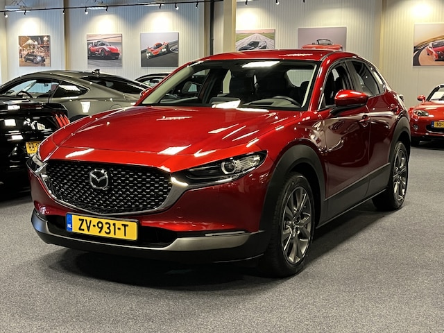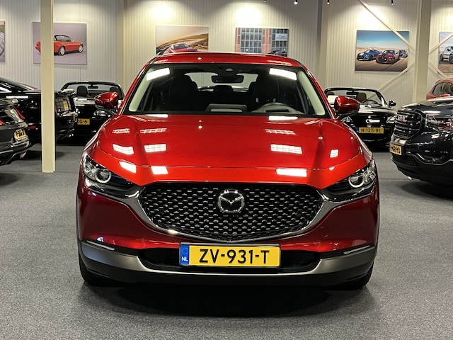 Punctueel onderhouden Mazda CX-30 e-SkyActiv-G 122PK in de extra luxe Comfort uitvoering met o.a. Lederen bekleding, 18-inch velgen, achteruitrijcamera, elektrische achterklep en parkeersensoren voor en achter.