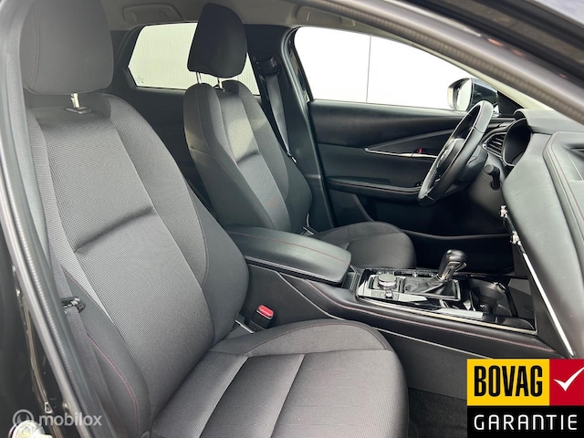 De intelligente veiligheidssystemen in deze auto waken continu over uw veiligheid. Blik permanent op de weg en toch belangrijke functies in beeld? De head-up display projecteert rij-informatie op de voorruit! In het instrumentarium kunt u bovendien de verkeersborden zien die u onderweg tegenkomt. Zo helpt deze Mazda u om veiliger te rijden. Deze Mazda CX-30 is ook behulpzaam als het gaat om een rechte koers. Het Lane-keeping systeem signaleert en corrigeert als u onbedoeld de rijstrooklijnen dreigt te overschrijden. Verder is deze auto uitgerust met dodehoekdetectie, forward collision warning system, hill hold functie, brake assist, vermoeidheidsherkenning en bandenspanningcontrolesysteem.