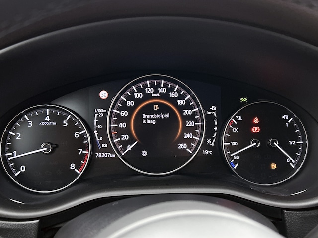 Geavanceerde technische systemen houden tijdens elke rit het verkeer in de gaten en reageren op potentieel gevaarlijke situaties. Veiligheid voor alles, ook als je rij- en routeinformatie wilt aflezen. De head-up display projecteert de gegevens op de vooruit en je kunt gewoon voor je blijven kijken. Een belangrijke bijdrage aan de veiligheid onderweg levert de verkeersbord-detectie in deze Mazda. Het Lane-keeping systeem let constant op en waarschuwt of corrigeert als je onoplettend over de lijnen van de rijstrook gaat. De auto is ook uitgerust met dodehoekdetectie, forward collision warning system, hill hold functie, brake assist, vermoeidheidsherkenning en bandenspanningcontrolesysteem.