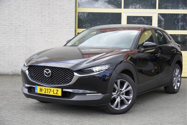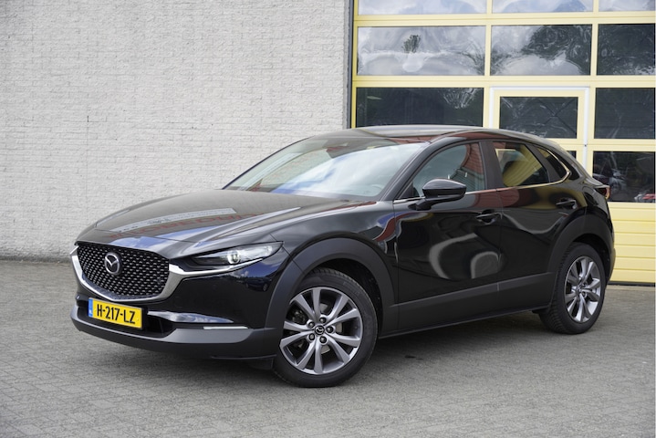 Mazda CX-30 met de zeer luxe aanwezige opties als Lichtmetalen velgen | Led dagrijverlichting | Led koplampen | Led achterlichten | Keyless entry | Parkeersensoren | Elektrische achterklep | Achteruitrijcamera | Navigatiesysteem | Climate control | Cruise control | Verwarmde voorstoelen | Verwarmd stuurwiel | Getint glas.
