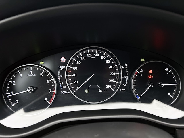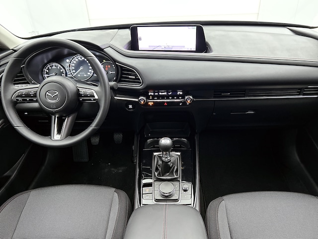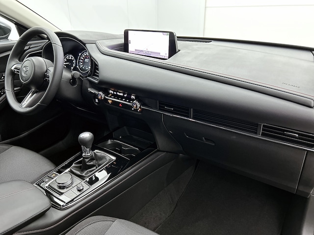 Met de nieuwste technologieën aan boord is deze Mazda in staat om zelf te reageren op potentieel gevaarlijke situaties op de weg. Onderweg worden ritfuncties naar keuze op de voorruit geprojecteerd met de head-up display. Een belangrijke bijdrage aan de veiligheid onderweg levert de verkeersbord-detectie. Deze Mazda CX-30 is ook behulpzaam als het gaat om een rechte koers. Het Lane-keeping systeem signaleert en corrigeert als je onbedoeld de rijstrooklijnen dreigt te overschrijden. Dankzij veiligheidsvoorzieningen als dodehoekdetectie, forward collision warning system, hill hold functie, brake assist, vermoeidheidsherkenning en bandenspanningcontrolesysteem, ben je steeds veilig onderweg.
