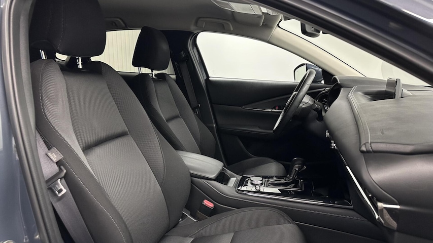In de Mazda CX-30 heeft uw veiligheid en die van uw omgeving prioriteit. Tijdens de rit hebt u altijd een bijrijder, want de verkeersbord-detectie leest de borden langs de weg en projecteert ze voor u op het instrumentarium. Het Lane-keeping systeem zorgt dat u mooi binnen de lijntjes blijft. Ongemerkt buiten de rijstrook komen is er niet meer bij. Op een kop-staartbotsing zit niemand te wachten. Daarom is de forward collision warning onderweg constant alert en berekent via een sensor de veilige afstand tot voorliggers. Met voorzieningen als dodehoekdetectie, hill hold functie, brake assist, vermoeidheidsherkenning en bandenspanningcontrolesysteem, bent u altijd veilig onderweg.