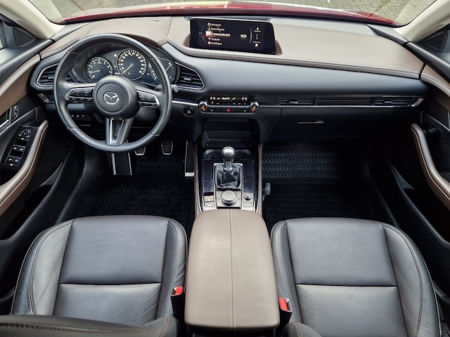 Met zijn stoere SUV carrosserie en metallic rode lak is deze Mazda CX-30 een echte blikvanger op de weg. Of je nu naar je werk rijdt, de kinderen naar school brengt of op avontuur gaat in het weekend, deze auto staat altijd voor je klaar.