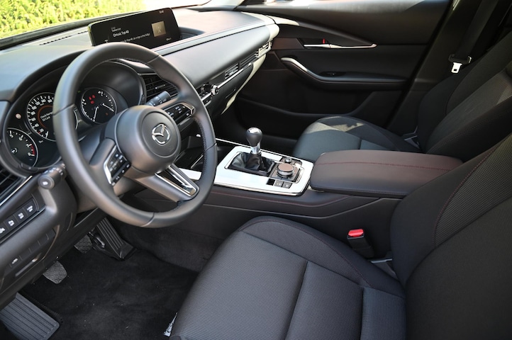 Zeer jong gebruikte Mazda CX-30 automaat in de complete Homura uitrusting en voorzien van de 2.5 liter (e-Skyactiv-G) met 140pk motor.