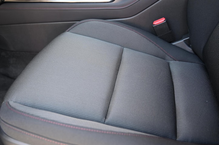 - Zwart stoffen interieur met rood stikstel