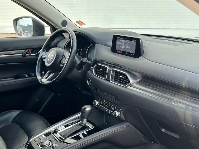 Mooie en zeer complete Mazda CX-5 165 pk Luxury automaat, afkomstig van de eerste (particuliere) eigenaar en volledig Mazda-dealer onderhouden. Het betreft een origineel Nederlands geleverde auto. Onder andere voorzien van: lederen interieur met geheugenfunctie, stoelventilatie en -verwarming, stuurverwarming, adaptieve cruise control, Apple Carplay/Android Auto, 19 inch velgen, 360 view camera en een trekhaak waarmee deze CX-5 2.000 kg mag trekken.
