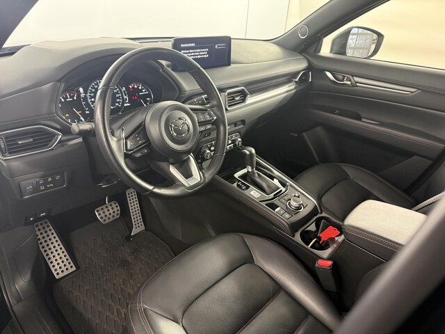 Dankzij hoogwaardige techniek en verschillende veiligheidssystemen, biedt deze Mazda CX-5 u optimale veiligheid en comfort tijdens iedere rit. De aandrijving van deze Mazda wordt verzorgd door een viercilinder benzinemotor en een automatische transmissie. Een lederen interieur is natuurlijk altijd een heerlijke plus. Maar wie van praktisch gemak houdt, wordt ook nog eens extra blij van het elektrisch bediende glazen panorama dak en de elektrisch bedienbare achterklep. In dit voertuig hoeft u nooit meer kou te lijden dankzij functies als stoelverwarming en verwarmbare achterbank, evenals een verwarmbaar stuur. De uitmonstering van deze auto wordt gecompleteerd door onder meer 19 inch lichtmetalen velgen, LED koplampen, dakspoiler, extra getint glas, in delen neerklapbare achterbank en LED-achterlichten.