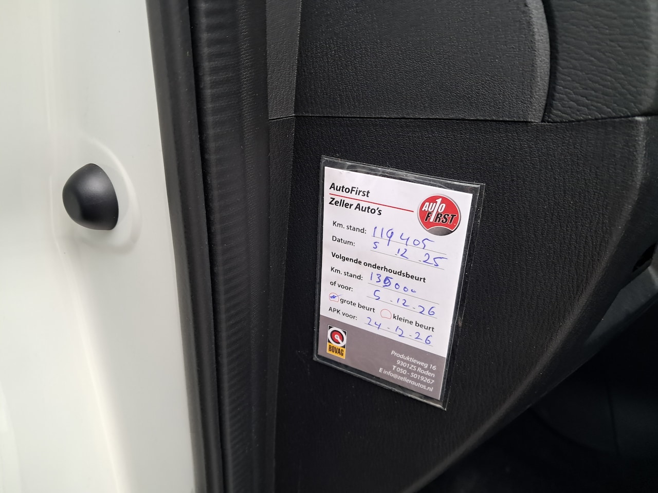 | APK | Bij aflevering |