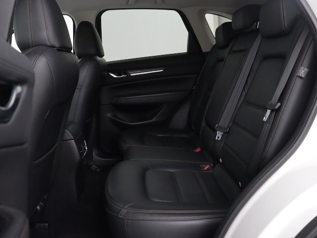 Alle technologie in de Mazda CX-5 is er op gericht om uw rit veilig en gemakkelijk te laten verlopen. De benzinemotor met automatische transmissie levert uitstekende rijprestaties. Mooi en handig gaan perfect samen! Kijk maar naar het lederen interieur en de elektrisch bedienbare achterklep. Alles aan deze auto is ontworpen voor comfort, tot aan de stoelverwarming, verwarmbare achterbank, en verwarmbaar stuur. Bij de uitrusting van deze auto horen onder meer 19 inch lichtmetalen velgen, LED koplampen, dakspoiler, extra getint glas, in delen neerklapbare achterbank en LED-achterlichten.