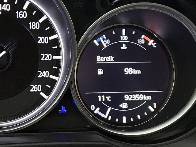 Pragmatisch en veilig als deze auto is, beschikt hij over diverse veiligheidssystemen. Bij de veiligheidssystemen van deze Mazda hoort ook de verkeersbord-detectie. Die leest tijdens het rijden als het ware met je mee en attendeert je op de significante verkeersborden langs en boven de weg. Het Lane-keeping systeem let constant op en waarschuwt of corrigeert als je onoplettend over de lijnen van de rijstrook gaat. Het risico van een kop-staartbotsing wordt aanzienlijk verminderd door de forward collision warning. Bovenop deze veiligheidsfeatures heeft deze Mazda bovendien head-up display, dodehoekdetectie, hill hold functie, brake assist, vermoeidheidsherkenning en bandenspanningcontrolesysteem.