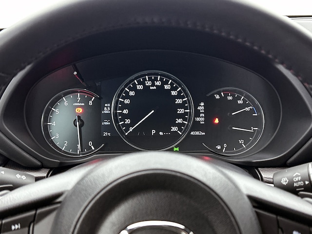 Het zal je verbazen hoe deze auto in staat is om voor jou de omgeving en het verkeer om je heen in de gaten te houden. Blik permanent op de weg en toch belangrijke functies in beeld? De head-up display projecteert rij-informatie op de voorruit! Een belangrijke bijdrage aan de veiligheid onderweg levert de verkeersbord-detectie in deze Mazda. Voorzien van het Lane-keeping systeem. Ofwel: blijf automatisch in je baan. Je bent mede dankzij dodehoekdetectie, forward collision warning system, hill hold functie, brake assist, vermoeidheidsherkenning en bandenspanningcontrolesysteem steeds veilig onderweg.