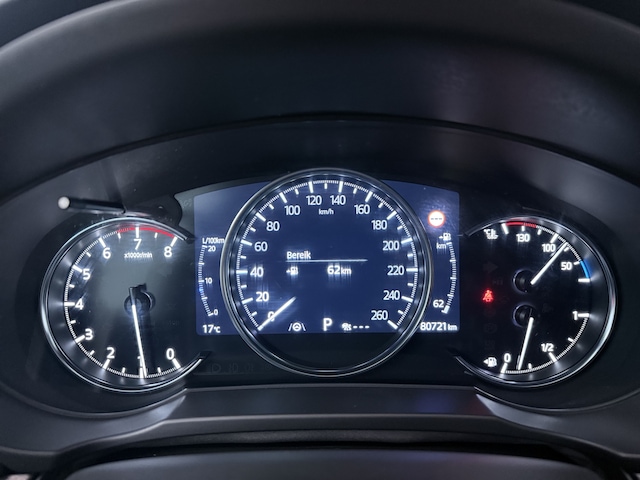 Je leest alle belangrijke functies helder af dankzij het digitale dashboard. Of je nu achteruit rijdt, parkeert of een smalle straat inslaat, de 360 graden camera op deze auto, mogelijk gemaakt door vier camera's, biedt een perfect beeld van je omgeving. Als je de adaptive cruise control inschakelt, regelt de auto zelf de snelheid en de afstand tot de auto voor je. De file assistent verzacht het fileleed door automatisch veilig afstand te houden tot de voorligger en zo nodig zelfs te stoppen als de rij tot stilstand komt. De auto is voorzien van een trekhaak en is een uitstekende caravantrekker. Deze Mazda is voorzien van dashboard met spraakbediening, connected drive services, full map navigatiesysteem, achteropkomend verkeer waarschuwing, electronic climate control en schakelpaddles aan het stuur.