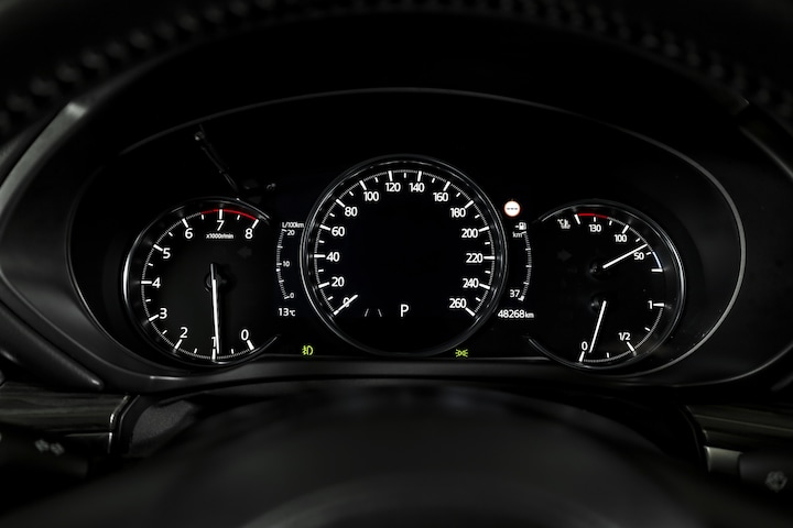 Als bestuurder van deze Mazda bent u nooit alleen. U wordt onderweg bijgestaan door technologische hulpmiddelen die samen met u de weg in de gaten houden. Als het nodig is, grijpen ze zelfs in, door te remmen of bij te sturen. Jachtvliegers doen het al jaren, maar u kunt het nu ook: met de head-up display functie-informatie aflezen zonder uw ogen van de weg te halen. Een belangrijke bijdrage aan de veiligheid onderweg levert de verkeersbord-detectie in deze Mazda. Het Lane-keeping systeem zorgt voor een automatisch constante positie binnen de rijstrook. Afdwalen is uitgesloten. Bovenop deze veiligheidsfeatures heeft deze Mazda bovendien dodehoekdetectie, forward collision warning system, hill hold functie, brake assist, vermoeidheidsherkenning en bandenspanningcontrolesysteem.