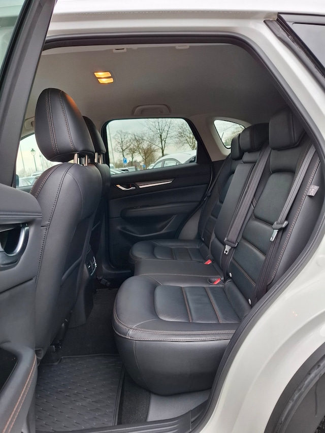 Dit is niet zomaar een Mazda CX-5. De hoge prestaties van de motor, het strak afgestelde onderstel en de uitgekiende verhoudingen van de transmissie staan garant voor bergen rijplezier. De uitstekende prestaties van deze auto komen van de viercilinder motor en de automatische transmissie. Altijd al een voorliefde gehad voor een lederen interieur? Deze heeft het. Evenals een elektrisch bedienbare achterklep. 's Winters komen de verwarmbare voorstoelen heerlijk van pas. Natuurlijk zijn de sportstoelen super functioneel als het rechterpedaal ingetrapt wordt. Maar ook voor het uiterlijk doen ze veel! Ook de passagiers worden verwend, door de verwarmde achterbank. Bij de uitrusting van deze auto horen onder meer 17 inch lichtmetalen velgen, extra getint glas en in delen neerklapbare achterbank.