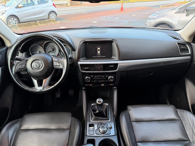 Doordachte techniek en intelligente systemen zijn pas waardevol wanneer ze een functie hebben. Meer dan wie ook hebben de Japanse autofabrikanten dit door, en dat merkt u ook aan deze Mazda CX-5. De krachtige motor geeft deze Mazda uitstekende prestaties. Houdt u van een stijlvolle uitvoering? Dan zal het lederen interieur u zeker bevallen. Bestuurder en bijrijder krijgen een warm welkom: deze Mazda CX-5 is voorzien van verwarmbare voorstoelen. In deze Mazda profiteert u onder andere ook van: 17 inch lichtmetalen velgen, LED koplampen, extra getint glas, LED-achterlichten en verstelbare lendensteunen.