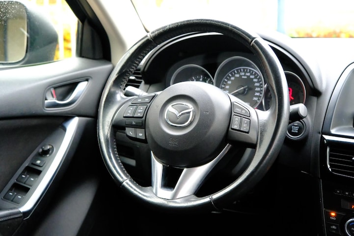 De auto is voorzien van een trekhaak en is een uitstekende caravantrekker. Onderweg kunt u veilig genieten van het audiosysteem en het navigatiesysteem. Want in deze Mazda bedient u ze vanaf het stuurwiel. Het spreekt voor zich dat een auto als deze ook van electronic climate control is voorzien. Een plekje vinden in de binnenstad is één, inparkeren is twee. Voor dat laatste heeft deze Mazda CX-5 prima parkeersensoren die u een handje helpen. Om de veiligheid onderweg te verhogen, heeft deze Mazda zowel een automatisch inschakelbare verlichting als een regensensor aan boord, zodat hij zelf de verlichting en de ruitenwissers kan inschakelen. Deze auto is voorzien van cruise control, automatisch dimmende binnenspiegel, centrale deurvergrendeling met afstandsbediening en boordcomputer.
