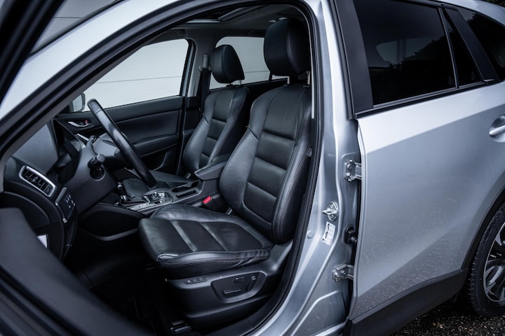 Zoals u mag verwachten van deze Mazda CX-5 is hij uitgerust met een reeks aan actieve veiligheidssystemen. Met het Lane-keeping systeem komt u nooit per ongeluk buiten de rijstrook. Met het accident avoidance system heeft u een extra paar ogen aan boord. Het systeem waarschuwt bij een dreigende aanrijding. Fijne optie, die hill hold control. U mag ook automatische hellingproef zeggen. Want dat is het. Geen millimeter achteruit rollen bij het wegrijden. Autorijden wordt steeds makkelijker en veiliger. Bovenop deze veiligheidsfeatures heeft deze Mazda bovendien dodehoekdetectie en bandenspanningcontrolesysteem.