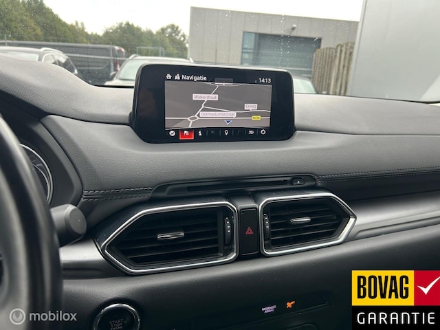 Deze Mazda CX-5 staat voor u klaar. Een geweldige, nog jonge occasion die goed is voor gemakkelijk nog een tonnetje of twee op de teller. De aandrijving van deze Mazda wordt verzorgd door een viercilinder benzinemotor en een automatische transmissie. De verwarmbare voorstoelen zijn een weldaad voor rug en schouders. Licht en lucht komen onbelemmerd binnen als het elektrisch bediende glazen panoramadak met één druk op de knop wordt geopend. De elektrische achterklep opent met een druk op de knop, zodat u gemakkelijk toegang heeft tot de bagageruimte. Natuurlijk behoren 19 inch lichtmetalen velgen, LED koplampen, dakspoiler, donker getint glas achter, in delen neerklapbare achterbank en LED-achterlichten ook tot de uitrusting van deze complete auto.