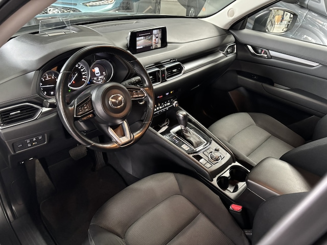 Het doordachte ontwerp van de Mazda CX-5 maakt hem tot een comfortabele en veelzijdige auto voor het hele gezin. Dit exemplaar heeft 96621 kilometer gelopen en is van het bouwjaar 2020. Deze SUV wordt aangedreven door een krachtige viercilinder benzinemotor. Het gevoel van luxe is inbegrepen dankzij het lederen interieur. Op koude en donkere dagen zijn de verwarmbare voorstoelen een uitkomst. Volop licht en ruimtelijk gevoel geeft het elektrische bediende glazen panoramadak. De elektrische achterklep opent met een druk op de knop, zodat u gemakkelijk toegang heeft tot de bagageruimte. Deze Mazda CX-5 heeft eigenlijk alles, zelfs een verwarmde achterbank. Bij de uitrusting van deze Mazda horen onder meer 19 inch lichtmetalen velgen, LED koplampen, dakspoiler, donker getint glas achter, in delen neerklapbare achterbank en LED-achterlichten.