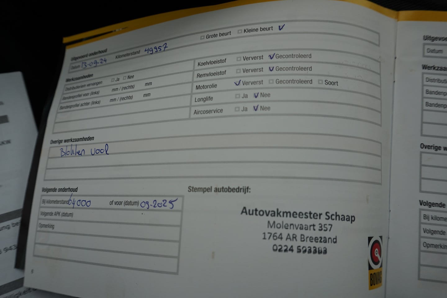 | APK | Bij aflevering |