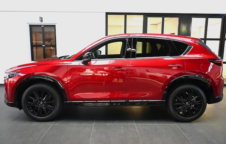 Hecht je waarde aan sportiviteit? Kies dan voor de Mazda CX-5 Homura met een eigen, krachtige ’look and feel‘ dankzij de zwarte velgen en zwarte spiegelkappen. In het interieur komt de sportieve flair tot uiting in de stoelbekleding en het rode stikwerk voor allerlei interieurdelen, zoals op het dashboard, het stuurwiel en de deurpanelen.