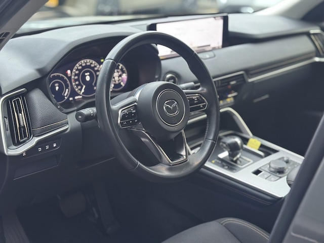 De Mazda CX-60 2.5 PHEV Exclusive-Line uit 2022, als eerste eigenaar, is een absolute parel op het gebied van hybride benzine auto's. Met een krachtig vermogen van 192 PK en een CC van 2488, staat deze SUV garant voor een indrukwekkende rijervaring. De opvallende grijze kleur en de metallic lak geven deze auto een moderne en stijlvolle uitstraling.