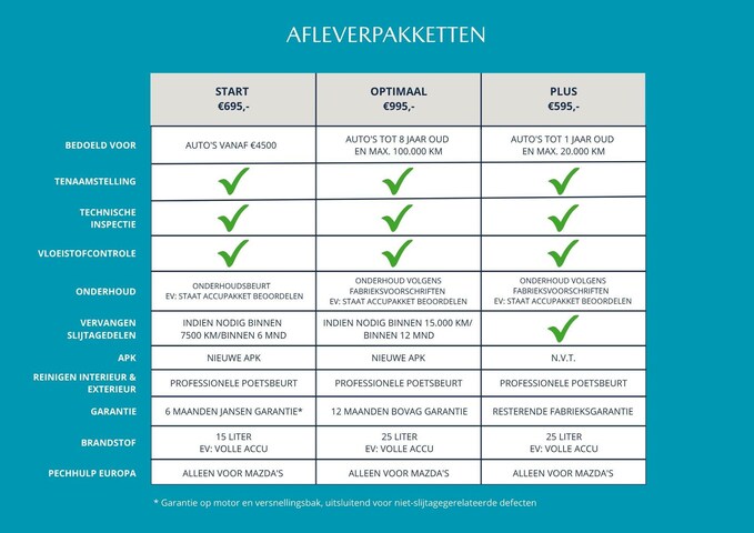 Voor auto's vanaf €4500,- is een uitgebreid afleverpakket beschikbaar inclusief 6 maanden BOVAG garantie.