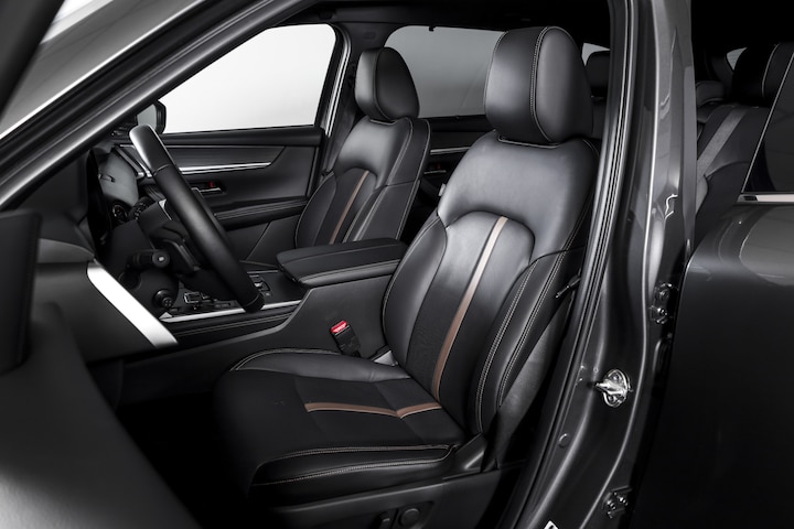 Als Homura Plus uitvoering onderscheidt deze CX-80 zich door zijn luxe en complete karakter. Het interieur is voorzien van luxe lederen bekleding met elektrisch verstelbare voorstoelen, waarbij de bestuurdersstoel elektrisch verstelbaar is met geheugen en ook de passagiersstoel elektrisch verstelbaar is. Zowel voorstoelen verwarmd als achterstoelen verwarmd zijn aanwezig, en voorin is er bovendien stoel ventilatie voor. Het stuur leder is prettig in de hand en extra comfortabel dankzij het stuur verwarmd.