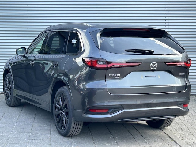 Dat u het milieu wilt sparen, wil nog niet zeggen dat u aan rijcomfort moet inleveren. De Mazda CX-80 is een comfortabele en ruime hybride auto. Deze nieuwe auto is nu uit voorraad leverbaar. Deze hybride Mazda CX-80 gaat slim om met energie. Door rijden en remmen wordt de accu van de elektromotor opgeladen, die de brandstofmotor en handje helpt of zelfs de aandrijving overneemt. We nemen u in gedachten even mee. Stop uw bagage moeiteloos achterin dankzij de elektrisch bediende achterklep, neem plaats achter het stuur en zie meteen het luxe lederen interieur. Even het elektrisch bediende glazen panorama dak open en rijden maar! De achterbankverwarming, het verwarmbare stuurwiel en de verwarmbare voorstoelen brengen passagiers en bestuurder snel weer op temperatuur, ongeacht hoe koud het buiten is. Natuurlijk behoren 20 inch lichtmetalen velgen, LED koplampen, trailer assistent, dakspoiler, extra getint glas en in delen neerklapbare achterbank ook tot de uitrusting van deze complete auto.
